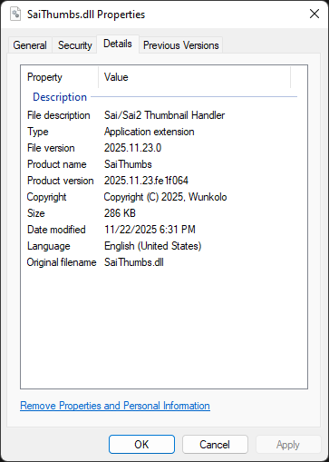If any particular .sai or .sai2 files seem to fail at creating a thumbnail, feel free to reach out so I can research any file format nuances I may have missed!
